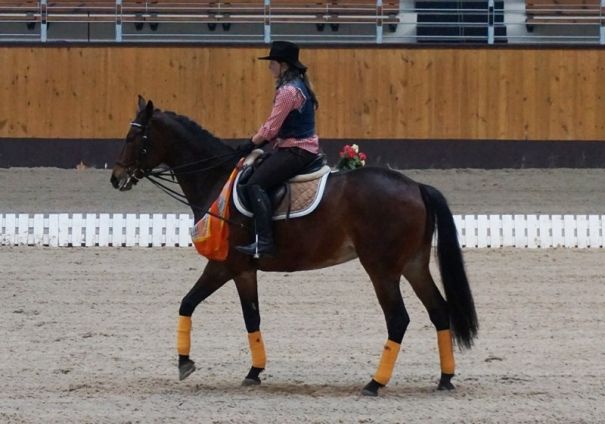 Мы с Музой-таки пережили эти выходные и главное их событие — костюмированный кюр. Это такой вид конного спорта, где лошади «танцуют» под музыку. В прошлом году я тоже выкладывала наши праздничные фотки и видео. В этом году мы изображали одинокого рейнджера и его пузатенького квортерхорса. Вроде, получилось ничего: