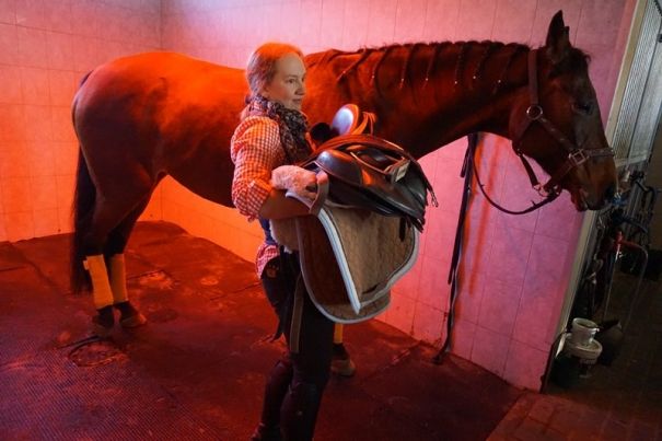 И фото из музея восковых фигур аля мечта Невзорова из солярия уже на конюшне. Я не знаю, почему у нее такая морда. Наверное, сахаром кормили недостаточно быстро: