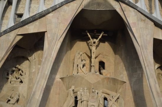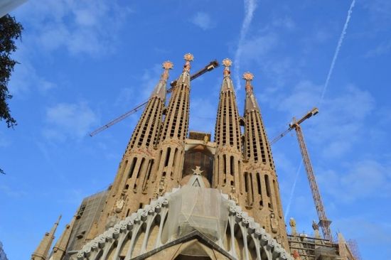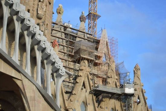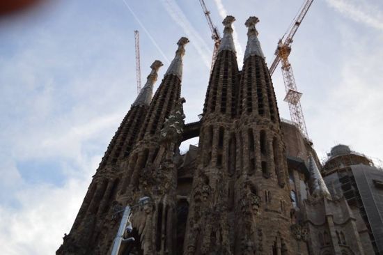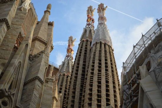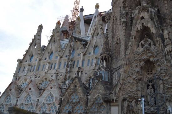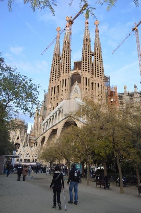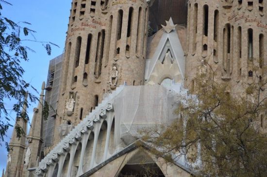 Вашек на второй день дотащил меня и до Саграды… Но с земли, обвешанная охранными тряпками, обставленная заборами, киосками и туристами, она похожа на громадный песчаный замок, построенный безумным ребенком… Открытки и обзорные ролики на ютубе меня впечатлили больше…