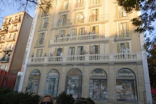 Это домик с нарисованными балконами и людьми)