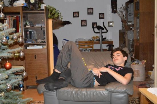Дить нарядил елочку и пообещал следить за бабушкой