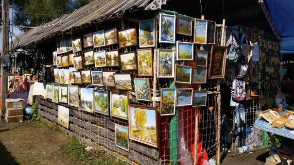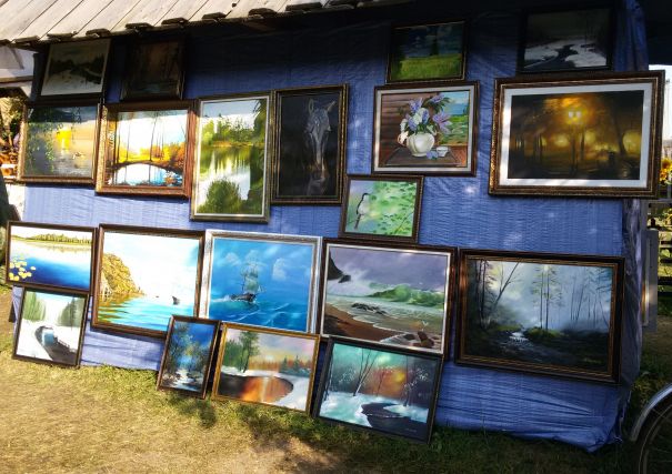 Есть еще на ярмарке уголок, вернее даже и не уголок, а целая картинная галерея под открытым небом.