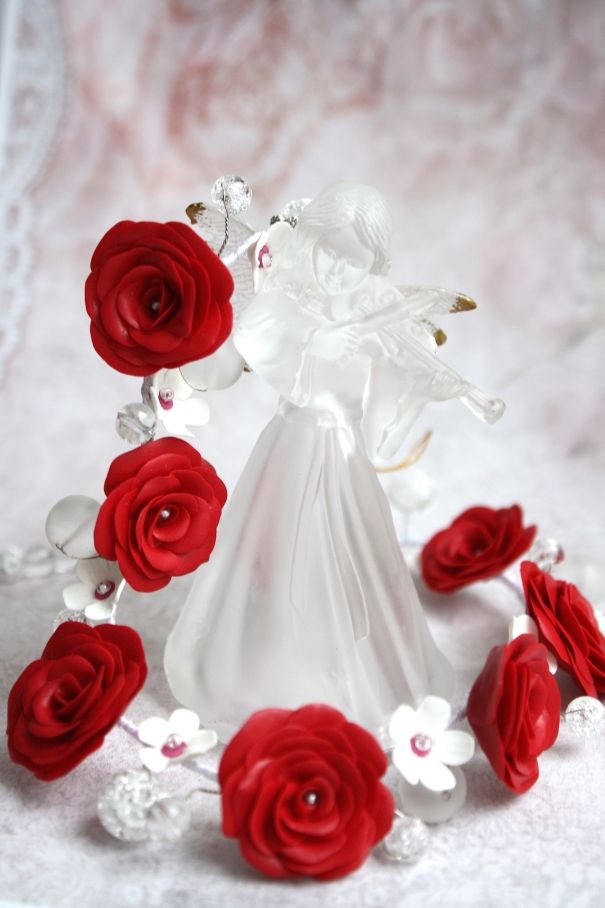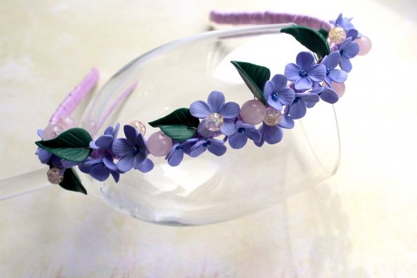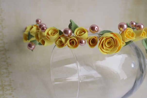 Я пробовала делать все виды женских украшений. Здесь — ободок с бутонами роз и жемчугом из чешского стекла
