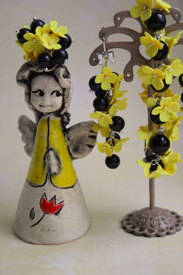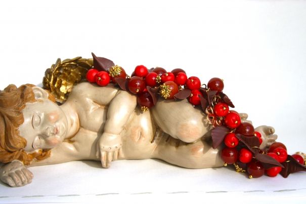 У меня есть коллекция ангелочков, некоторые уже знают))) Так вот, эти ребята не мало помогают в фотосессиях. Ниже — чудесный пример гармонии между скульптурой ангелочка и комплектом украшений под названием Пчелка