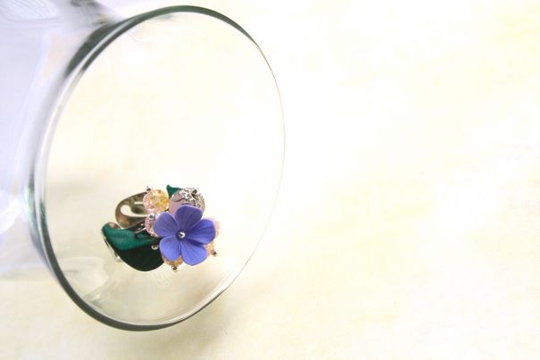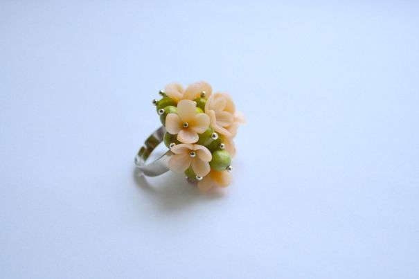 Колечко, безразмерное. Цветок и листья — ручная работа