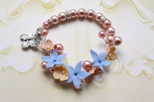 Браслет с жемчугом из чешского стекла. Возможно, прилетел на бабочке