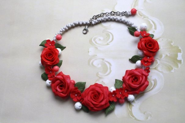 Подруга просила сделать для нее красное колье. Она сейчас как раз в поисках спутника жизни… Думаю, в таком украшении ее никто не пропустит