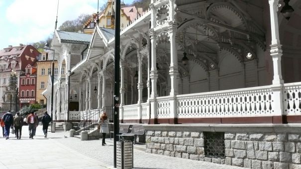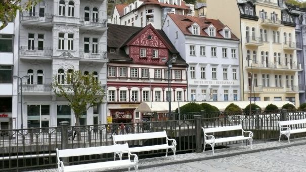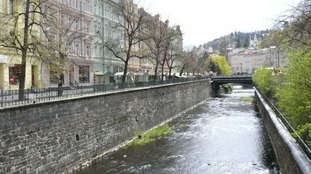 В Карловых Варах тепло и спокойно. Река Тепла наполнена горячими источниками целительной воды.