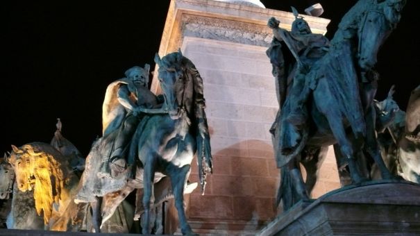 И напоследок немного ночного Будапешта. Освещенные мосты и берега Дуная потрясающе красивы. Но качественно сфотать не удалось. Могу поделиться видом на Оперный и площадь Героев. Кони и всадники застыли на мгновение, но вскоре оживут и ровно в полночь прошествуют по мостовым города. Тогда берегитесь те, кто не успел спрятаться в своей маленькой норке! А пока еще есть время полюбопытствовать, без риска попасть под величественное копыто.