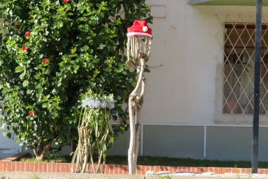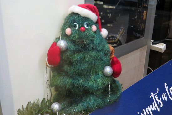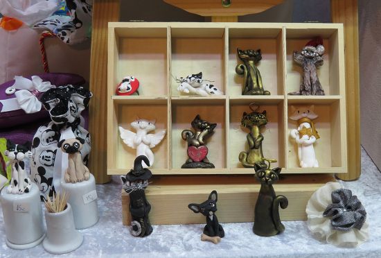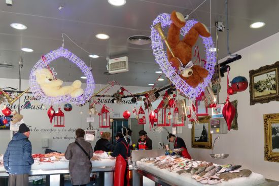 Как, например, вот этих котов на ёлках, которые стоят на рынке. Их вырезали дети.) Или мишки на рыбном рынке в Камбрилсе…