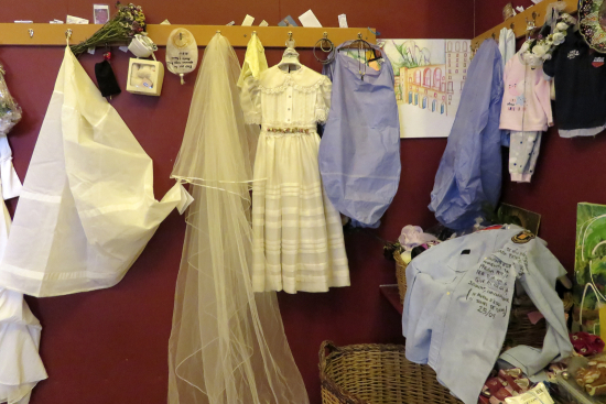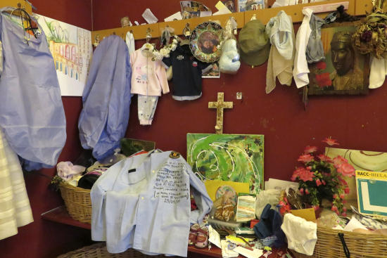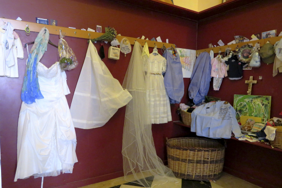 Потому что одного топика для этих удивительных мест мало. Поэтому хотим показать то, что о чём в прошлый раз рассказывали, но не показывали. Например, комнату с дарами. В предыдущем топике мы рассказывали, что те, кто получил у Мадонны помощь, потом приезжают и привозят ей подарки. Это и свадебные аксессуары, если кто-то просил Мадонну о замужестве, и детские вещи, если она помогла тем, кто потерял надежду иметь ребёнка.