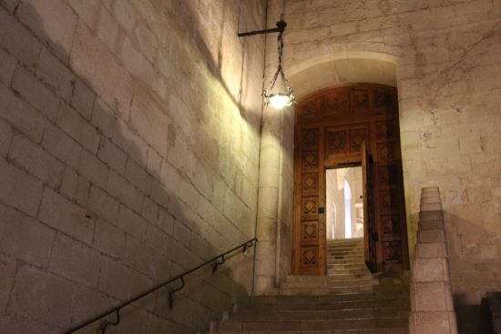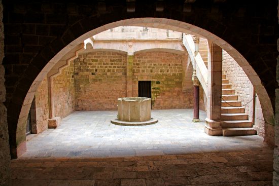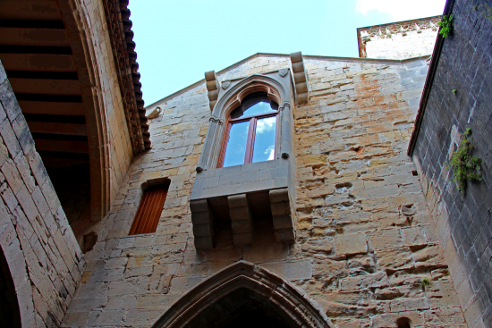 И осмотрим его изнутри. На первой фотографии Аббатский дворец. В Сантес-Креус также есть захоронения. Могильные плиты на полу Зала принадлежат гробницам настоятелей монастыря, но в нём также похоронены и некоторые из королей, пожелавшими быть захороненными именно в Сантес-Креус. Их гробницы находятся в монастырской церкви 13 века. Это гробницы Педро III Великого и Хайме II и его жены Бланки Анжуйской. Они являются настоящими сокровищами монастыря.