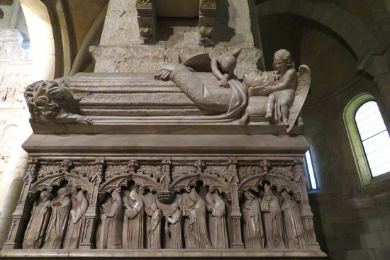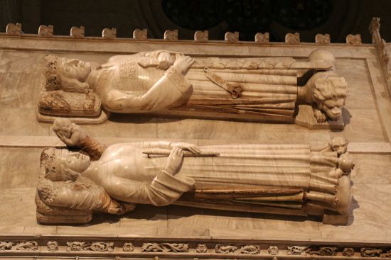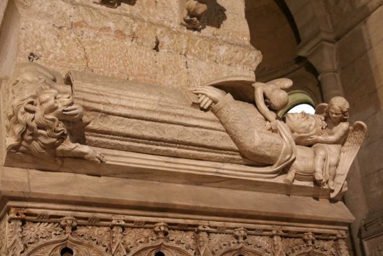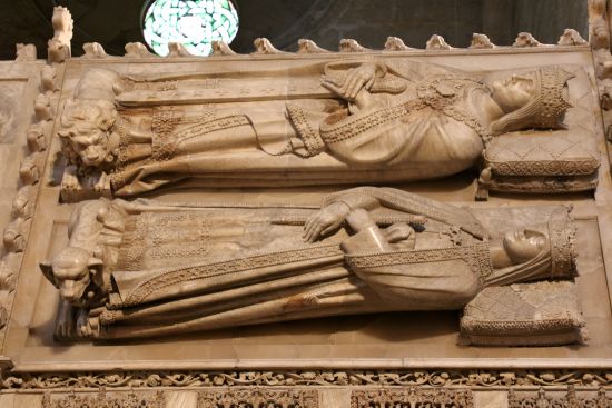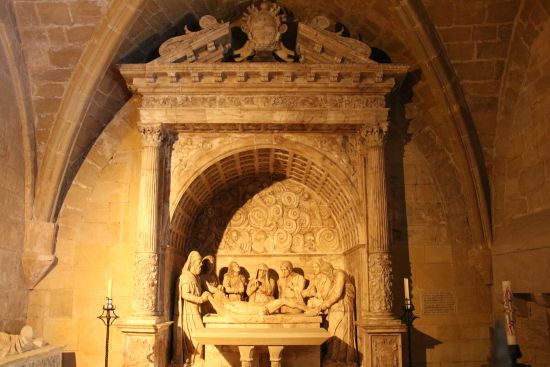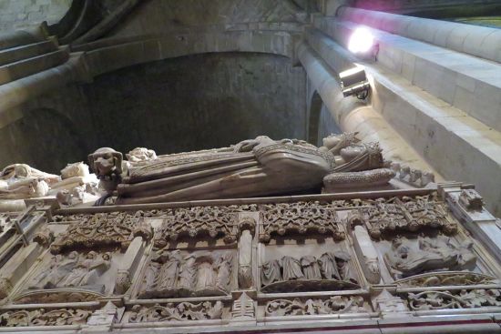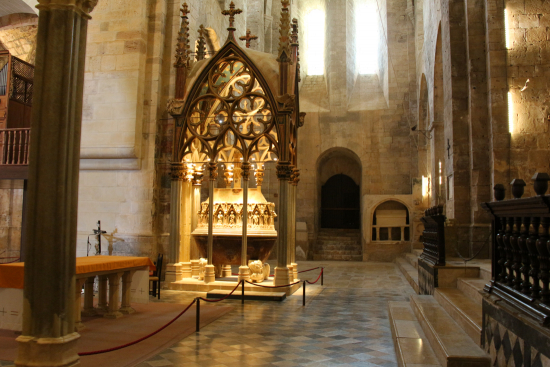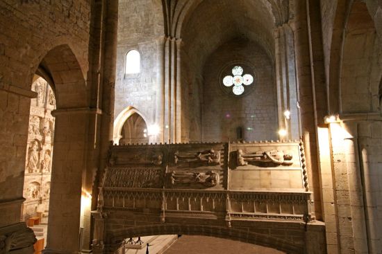 И посмотрим королевские гробницы, которые производят сильное впечатление. Гробницы находятся в арках, над головами. По обеим сторонам от алтаря. В Поблете покоится и Хайме I Завоеватель, и король Педро IV Церемонный и три его супруги, Альфонсо II Целомудренный, Хуану I Охотник… в общем почти все славные короли Арагона.