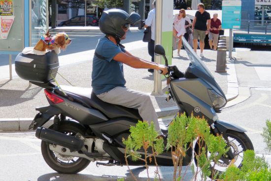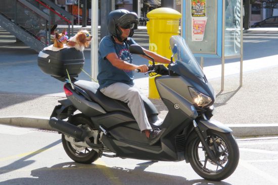 И даже на скутерах. Вот эта пара байкеров нас очень рассмешила. Они ехали с такими гордыми мордами! И уши развевались по ветру. Нам повезло, потому что хозяин остановился на светофоре.)