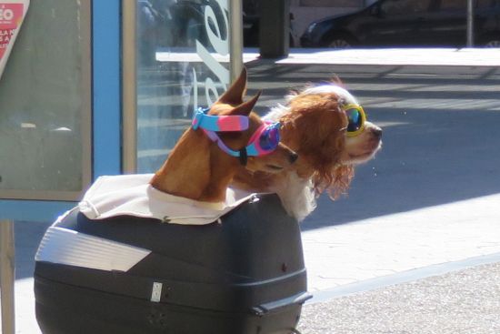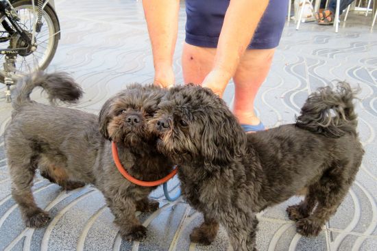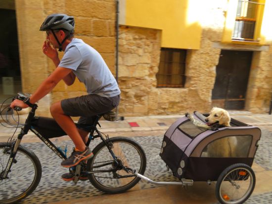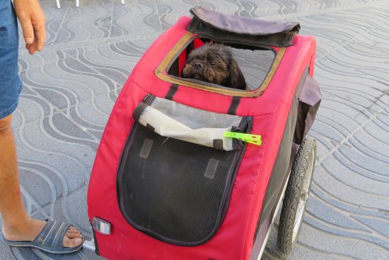Кстати, хозяева очень любят, когда к их питомцам проявляют внимание. Однажды мимо нас проехал мужчина на велосипеде с прикреплённой коляской, из которой торчали собачки. Мы не успели сфотографировать, так он остановился, вынул собачек и заставил их позировать.)