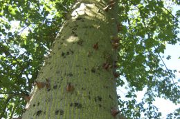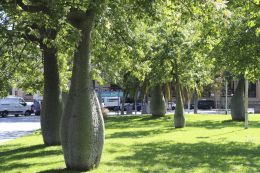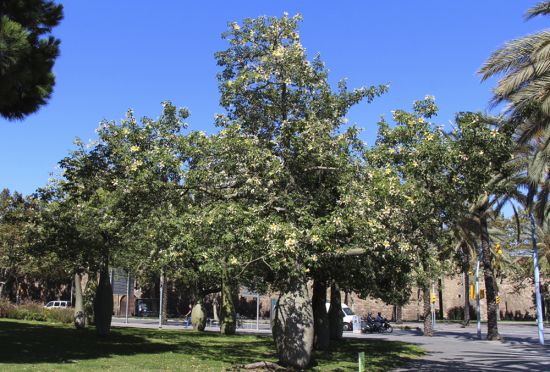 А это любимый скверик. Любимый из-за деревьев. Называются они palo borracho, хотя и не понимаем – зачем их так ботаники оскорбили, если учесть, что боррачо – пьяница. Хорошие такие, пряменькие, к ним даже ни один пьяный не прислонится, потому что стволы у них очень шипастые.
