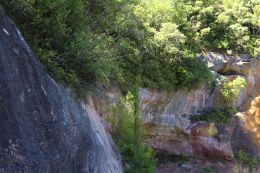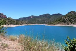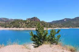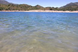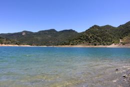 Горное озеро, оно же водохранилище. Вода в нём целебная. Она и пахнет немножко. Серой. Водичка синяя, прозрачная и очень тёплая. Единственный минус – острые камешки.)