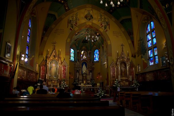 Внутри тихо. И воздух какой-то… густой. Насыщенный. Это место молитвы, здесь никто не фотографирует, хотя нет запрета, я проверила. Я сделала пару фотографий и все… сорри. Но больше не будет. Есть запрет зато на разговоры, шум и т.д. И в костеле по особому тихо. Спокойно.