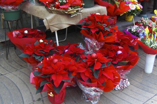 И, конечно же, на Рождество не обойтись без ещё одного символа – цветка Рождественская звезда. Пуансеттии прекраснейшей. Его продают повсеместно – и в магазинах, и в цветочных ларьках, и на улицах.