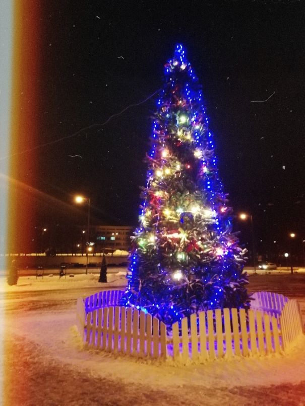 Начну с окрестностей, а если быть точно — с посёлка Лесной, откуда я и начала свою прогулку. Ёлка: вид издали и вблизи: