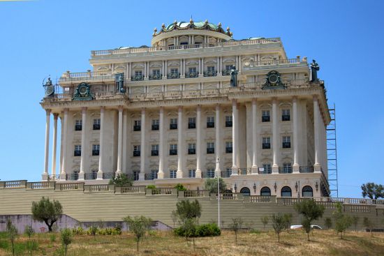 В Албании тоже были свои девяностые после падения режима. И вот один… «новый албанец» задумал построить самое роскошное в Европе казино! Но… потом ему пришлось срочно эмигрировать, так что казино осталось, опять же, как память уже о девяностых.