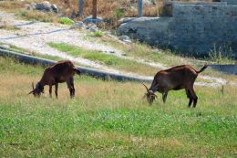А на «второй линии» дома местных жителей, с магазинчиками на первых этажах и… козочками и петухами.)