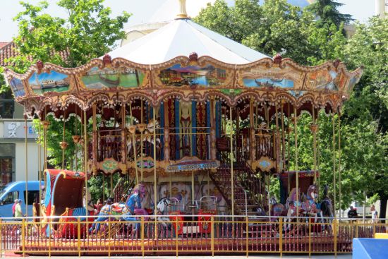 2. – Лабиринт «Облако». 3. — Мечеть Эфем Бея и Часовая башня – 18 век. 3. — Площадь Скандербега – главная площадь города. 4. Уличный певец, который просто потрясающе пел неаполитанские песни.) Далее – городские улицы, а вот на последней фотографии… угадайте – что это?)