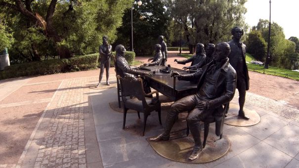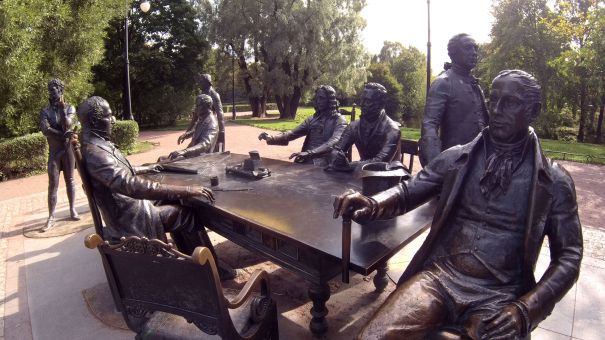 Они тут сидят специально для того, чтобы селферы забирались к ним на ручки и фоткались!!! А пустое кресло — это, видимо, один зодчий на работу не пришёл, отлынивает…