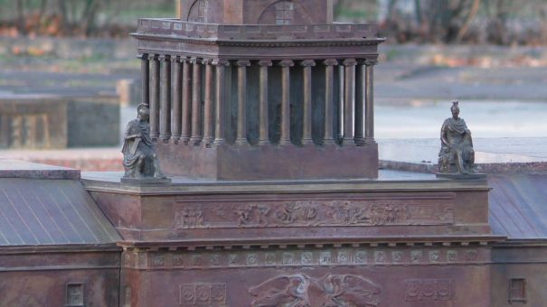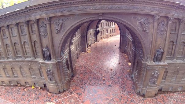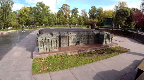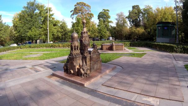 Мини-город — музей под открытым небом, в котором собраны уменьшенные копии зданий Санкт-Петербурга и обнесены забором, который закрывают после 9 вечера, в плохую погоду и вообще на зиму. Покровитель Петербурга — Апостол Пётр (он сидит рядом с Мини-Городом, но снаружи забора, на видео можно его увидеть), а ещё рядом с Мини-Городом есть зодчие, которые проектировали эти здания — они собраны компанией у входа.