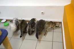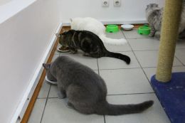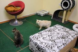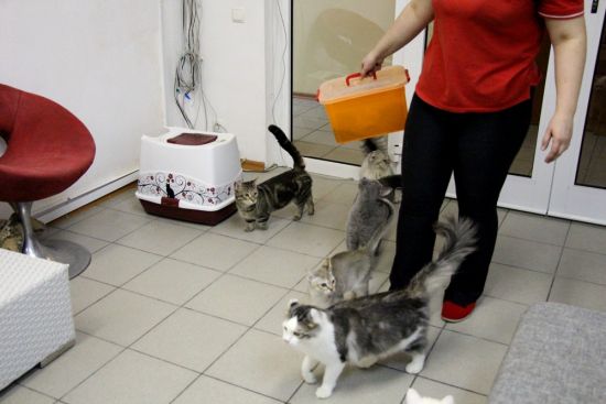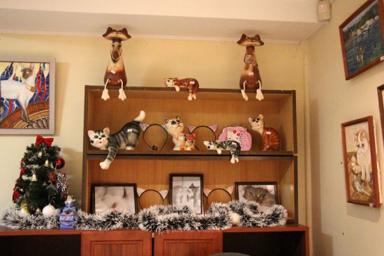 Идём – и, вдруг, к нам подлетает женщина и говорит: «Приглашаю вас заглянуть к кискам. Вас ждёт общение и приятное времяпровождение!» И даже вызвалась проводить.) Зашли, нам сразу выдали бахилы, верхнюю одежду тоже нужно было снять и…в комнаты! А в каждой комнате – кошки!) Разных пород, есть даже и очень редкие. Но самое замечательное, что это не как на выставке – с кошками можно и играть, и гладить их, и на руки брать! И мы были там одни! А, вдруг, у нас давно уже выросли и усы, и хвосты, только мы этого не видим, а другие видят? Непросто же так она нас сразу выбрала.
