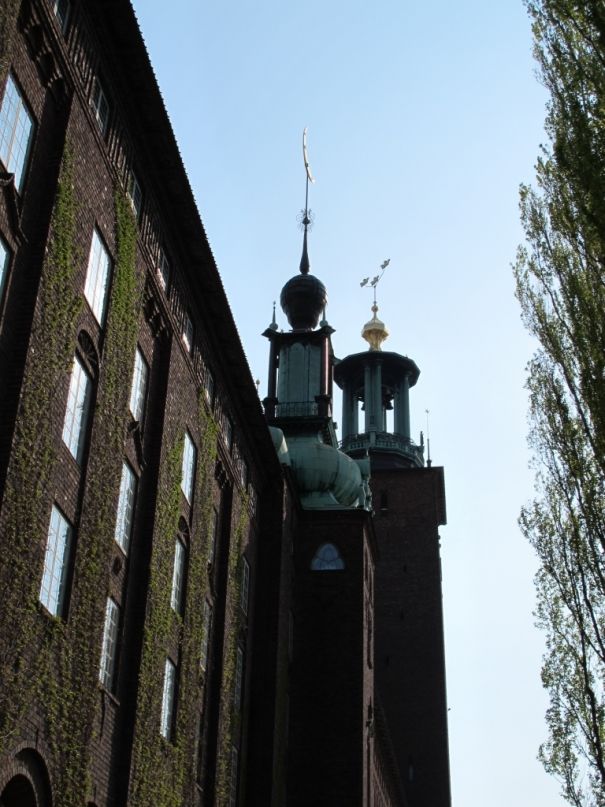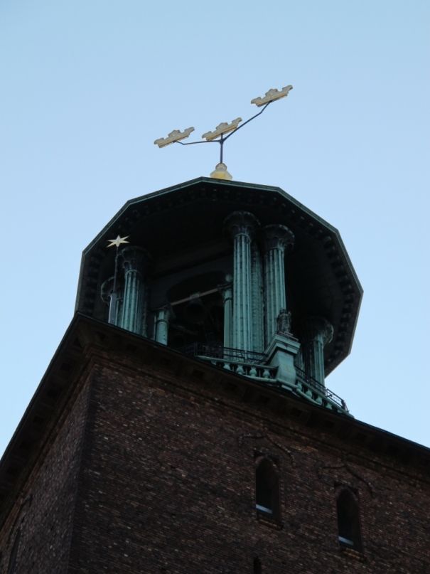 После посещения музеев и парка Astrid Lindgren's world, можно заглянуть в городскую Ратушу (1923г.). Башню венчают три позолоченных короны, которые считаются символом Швеции, потому и изображены на малом гербе страны.