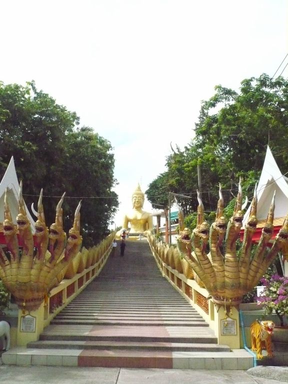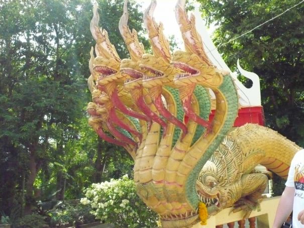 В Таиланде очень много Будд и храмов, им посвящённых. У очередного храма Будд пришлось подниматься высоко по лестнице, поглаживая неимоверно длинную и чешуйчатую спину змея-охранника Нуга, загадывая при этом желание.