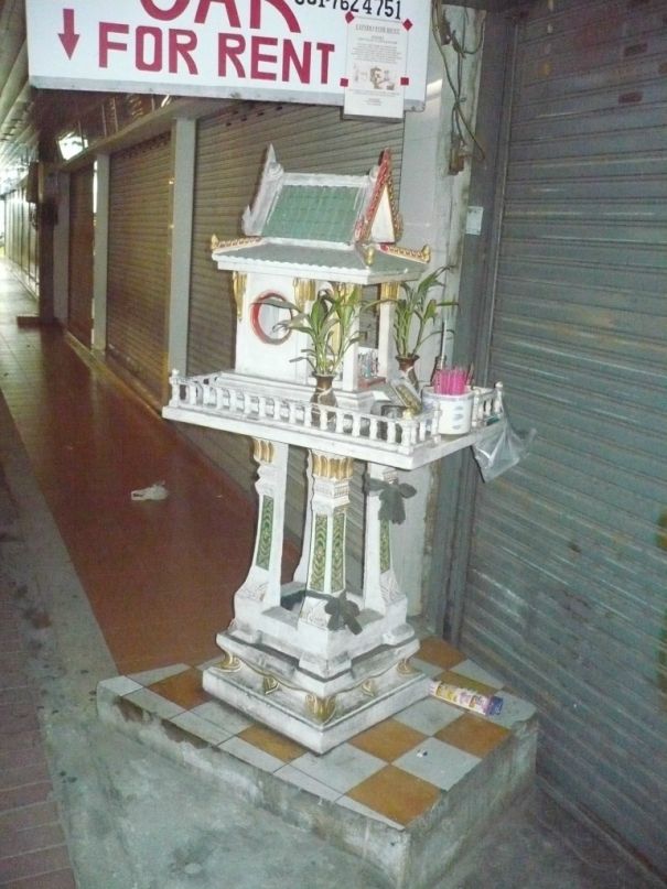 Что меня особенно впечатлило в Таиланде – это пережитки язычества, поклонение духам земли, воды, воздуха. У каждого домика и общественного здания установлены домики для духов, просто изумительной красоты. Тайцы каждый день поклоняются им, приносят дары (особо распространенный дар – бутылка фанты или кока-колы), просят у них помощи в решении проблем. Эти места священны. И это несмотря на то, что 95 % населения – буддисты.