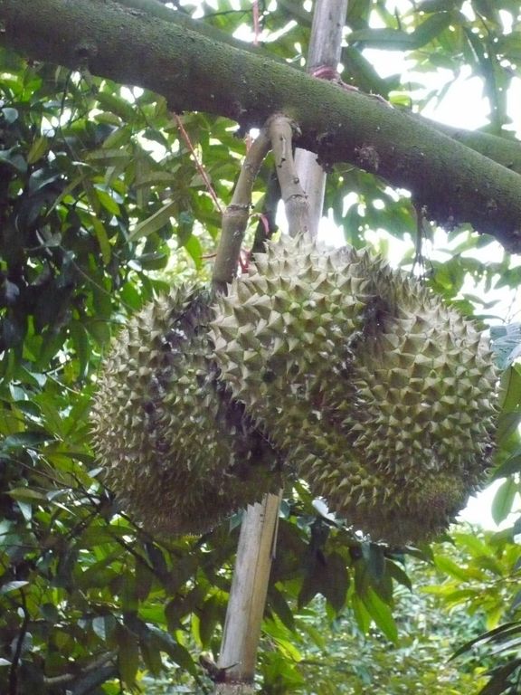 Ну и конечно, нельзя обойти вниманием короля фруктов Таиланда – дуриан (выглядит как шипастая зеленая дыня). Дуриан считается важнейшим фруктом, в нем содержится до 70 полезных веществ, в том числе, и витамины. Вкус фрукта каждый человек определяет для себя сам, мне он напомнил заварной крем. Так как он очень питательный, много его не съесть. Здесь таится главная опасность – через 15 минут после вскрытия дуриана, он начинает разлагаться и становится непригодным для еды и для местонахождения окружающих. Поэтому установлен строгий запрет на пронос дуриана в гостиницы и общественные места. Был случай, когда поврежденный дуриан тайно пронесли в самолет, после чего через полчаса пришлось совершать срочную посадку, эвакуацию людей и проветривание помещений.