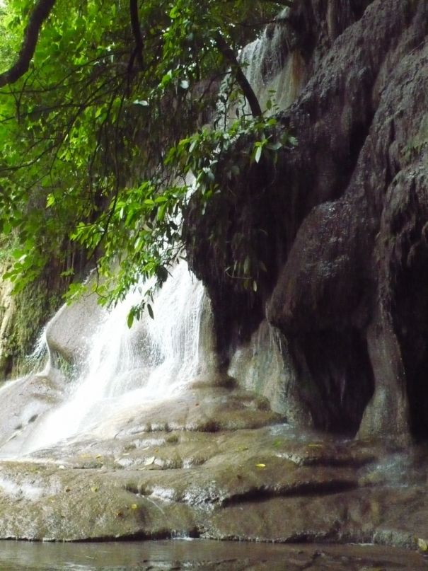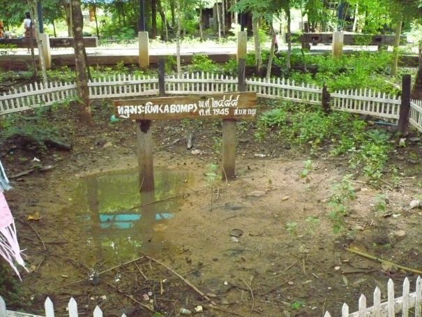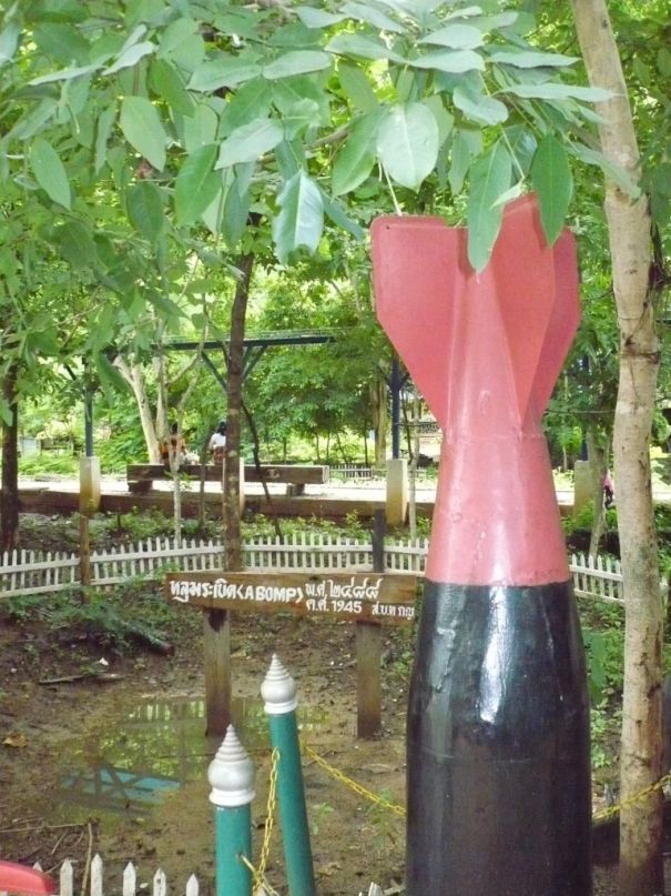 Это старая железнодорожная дорога, которая усердно бомбилась американцами в годы войны. Погибло много мирных людей. Остались воронки от взрывов, огороженные забором. Рядом с дорогой в пещере монахи лечили раненых солдат. Чуть позже в этой пещере прятались японские солдаты. Чтобы не сдаваться, они сделали себе харакири.