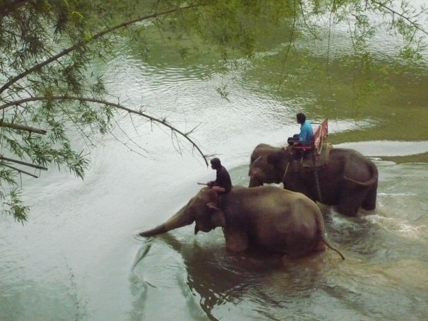 гид сообщил туристам, что в реке водятся крокодилы, что они особо предпочитают нападать на людей в спасжилетах определенных цветов, поэтому такие жилеты самые потрепанные. Когда все туристы плыли по реке, подхваченные течением (это входит в программу, плот тем временем уплывает далеко вперед к водопаду), один мужчина увидел плывущего варана. Мужчина издал такой крик, который был слышен даже на границе с Бирмой, до которой 13 км. Все туристы сразу вспомнили какого цвета у них спасжилеты и дали такой плавок, что мгновенно побили все рекорды олимпийских игр.