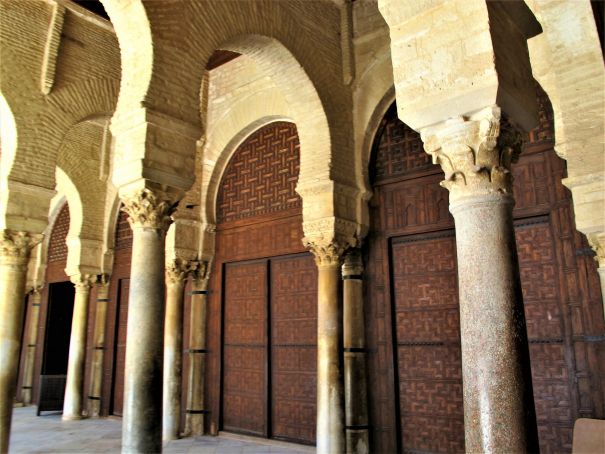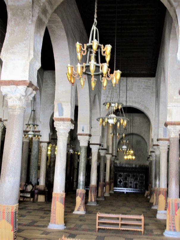 В Кайруане уцелело множество мечетей, среди которых первое место занимает соборная мечеть Кайруана, заложенная вместе с городом в 670 году. Нынешнее здание, более напоминающее крепость, с 35-метровым минаретом, — памятник эпохи Аглабидов. Материалы для её строительства были привезены из разрушенного арабами Эль-Джема, в их числе — 414 античных колонн. В 1057 году мечеть сильно пострадала от набега кочевников.
