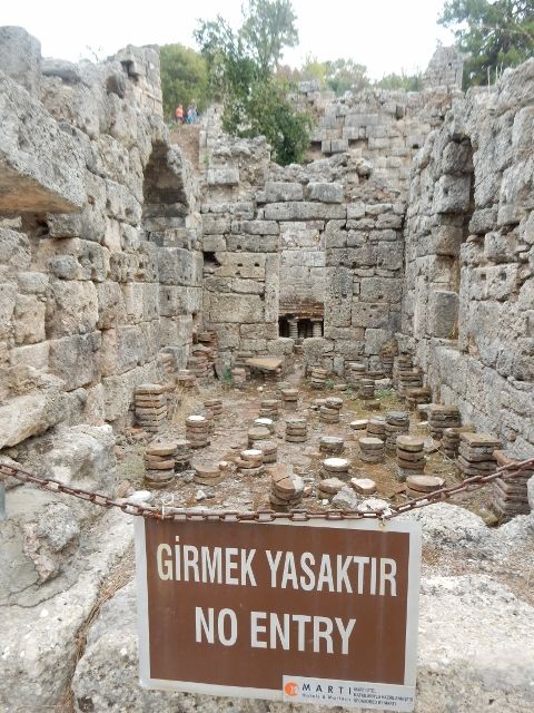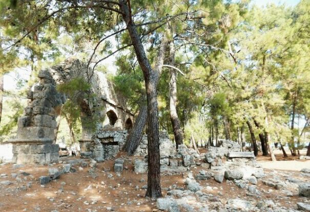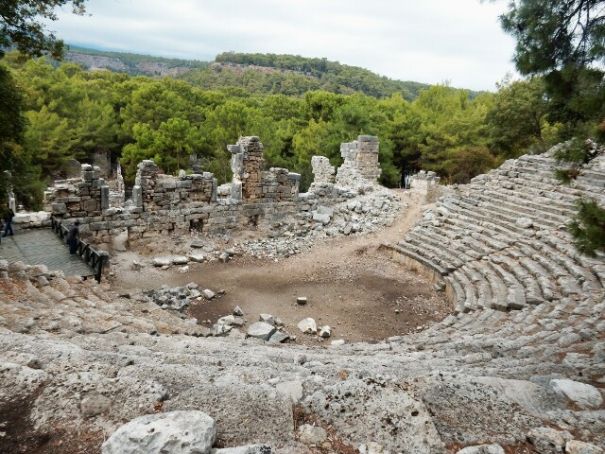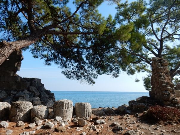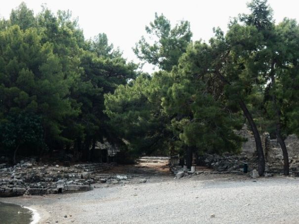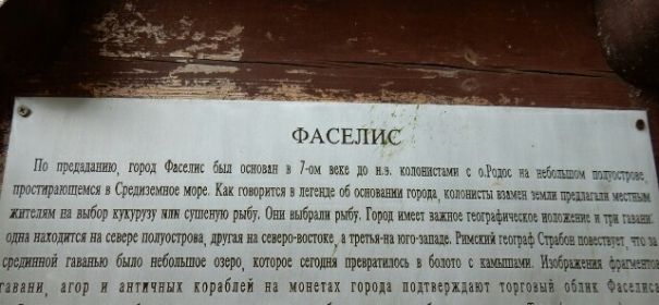 А в другой стороне, совсем недалеко от Кемера, находится один из античных городов — Фаселис. Маршрутка сворачивает с основной трассы и любезно подвозит отдыхающих прямо к проходной.