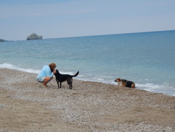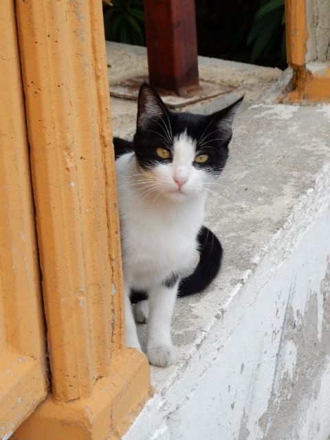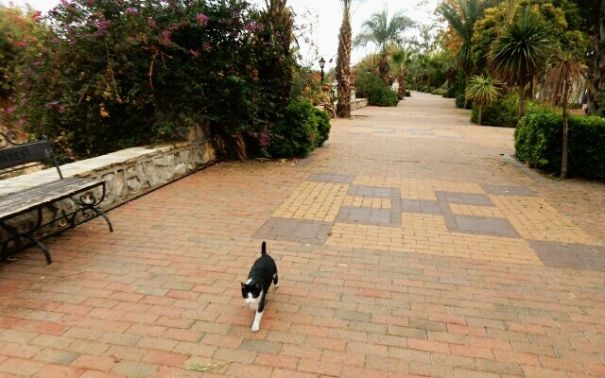 Тут к прогулке присоединилась кошка, решившая, что без нее — никак. И далее, вдоль красивой набережной реки, в ожидании маршрутки, мы ходили уже вместе. (Кошка поела, составила компанию до посадки на автобус, и осталась ждать летних туристов).