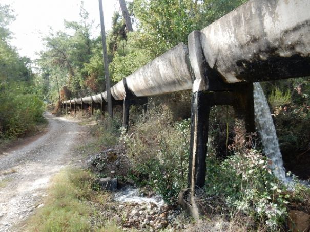 На берегу развалин больше, чем в лесу, а в стороне завлекательно возвышается древний акведук (рядом с которым расположены автостоянка и кафе).