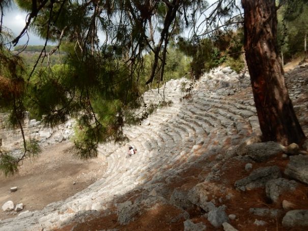 Над агорой, на склоне холма, есть амфитеатр, к которому ведет лестница.