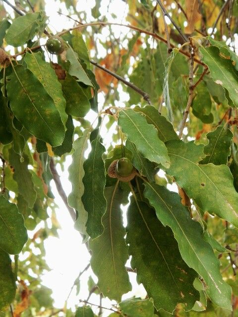 Тут, на ступенях, местами лежит масса опавших желудей. Но только после упорного выглядывания оных в листве деревьев можно опознать и дубы.