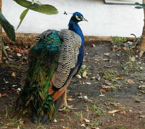 В обширном саду выставлены крупные экспонаты. Тут же гуляют павлины.