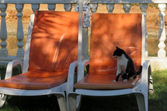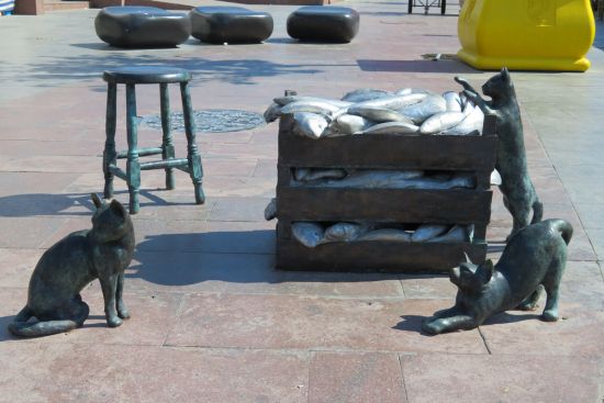 Котов в городе много! Как и собачек. Правда, из-за жары коты попрятались в зелень.)