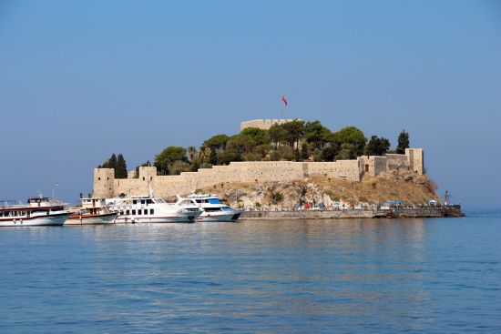 А также в городе находится главная достопримечательность — османская крепость — замок Гюверджинада. Когда-то это был остров, но потом его соединили с сушей насыпью. И ныне это полуостров.