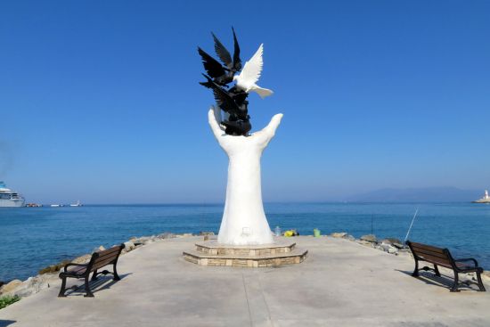 Ранее этот остров назывался – Кушадасы – птичий остров, из-за того, что там гнездилось много птиц, но когда был основан город, то название перешло ему, а сам остров стал называться голубиным.