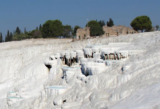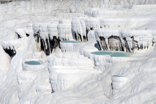 Если бассейн Клеопатры был построен вокруг источника, но потом был разрушен землетрясением, то Памуккале построила сама природа.