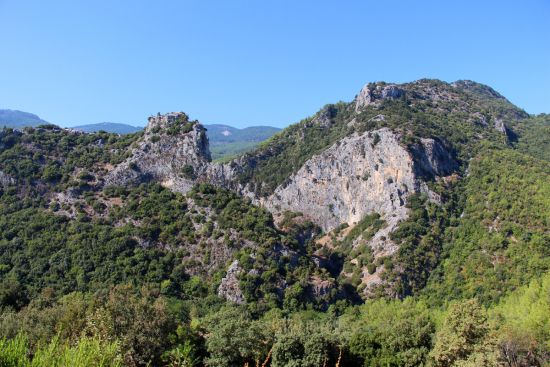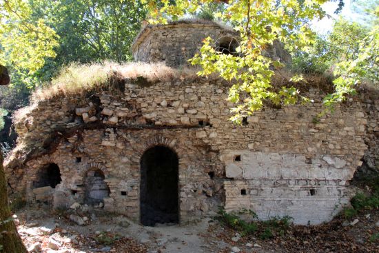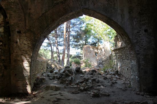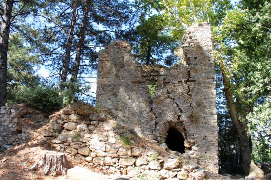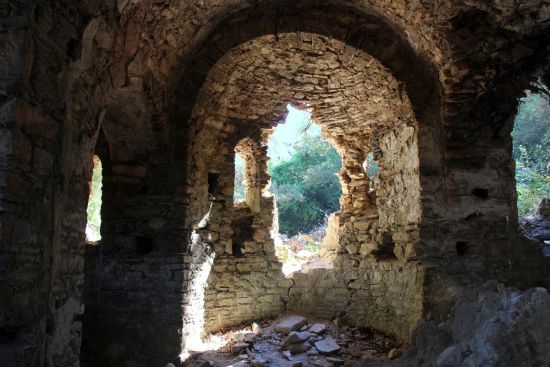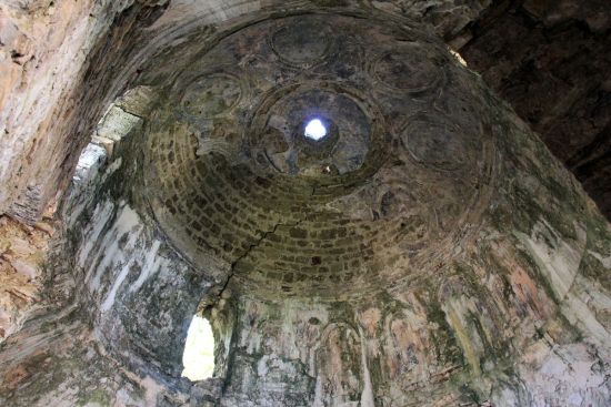 А теперь будем подниматься выше. К заброшенному и разрушенному временем монастырю. Полагают, что прежде он был византийской православной церковью, возведенной во II веке, в которой прятались первые христиане. Со временем монастырь Куршунлу стал известен как духовное училище. В стенах монастыря располагались столовая, кухня, подвал, кельи монахов и кладбище. Причём, могилы не в земле, а в нишах каменного сооружения… Даже сейчас сохранились эти ниши, в которых похоронены монахи. Было бы интересно ночью там походить.)