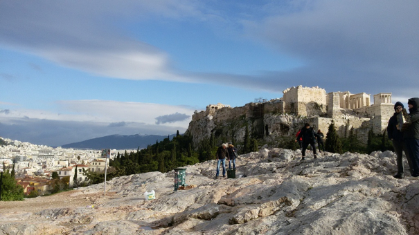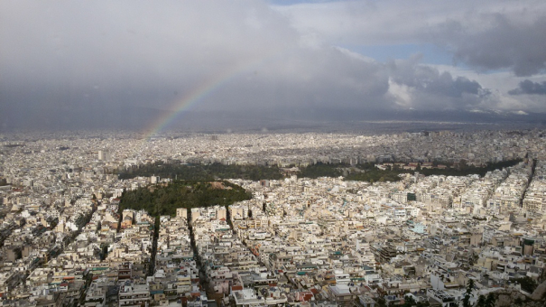 Удивительно, но, похоже, природа решила нас побаловать. Послала нам радугу. На одной из фотографий ее немного видно. До этого же в Афинах два дня был дождь. Только мы его почти не застали, так как ездили в другие места))