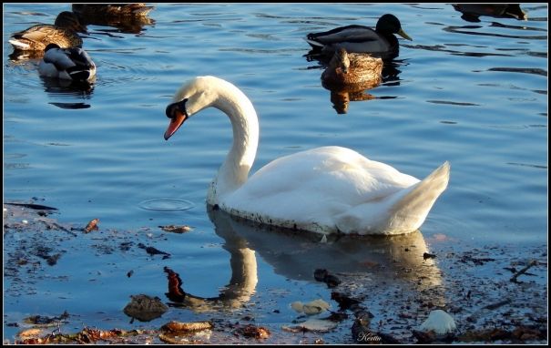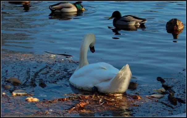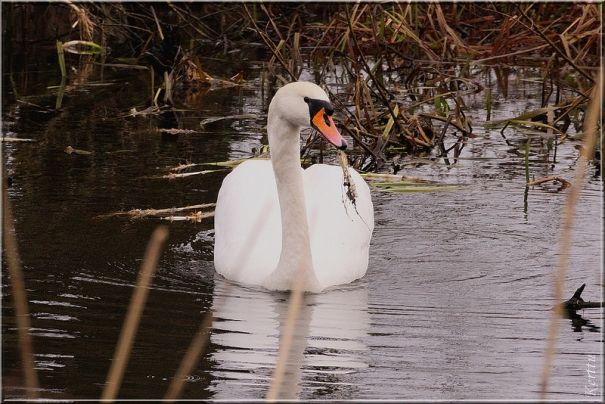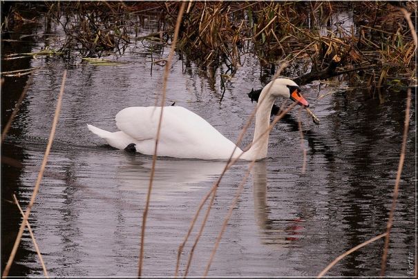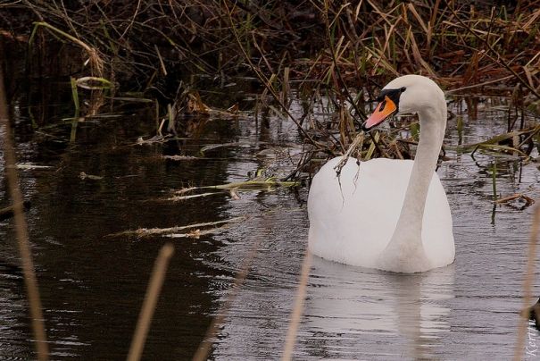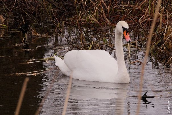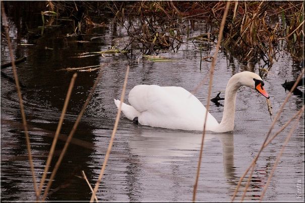 И тут я сделала открытие века!!! Не все лебеди патологические попрошайки (а было чем угостить, было...) и некоторые делают ноги при виде человека. Последний снимок не очень хорош по качеству, но видно, как ушла река за камыши… и лебедь уплыл подальше… испугался. Жаль, не хотела его спугнуть.